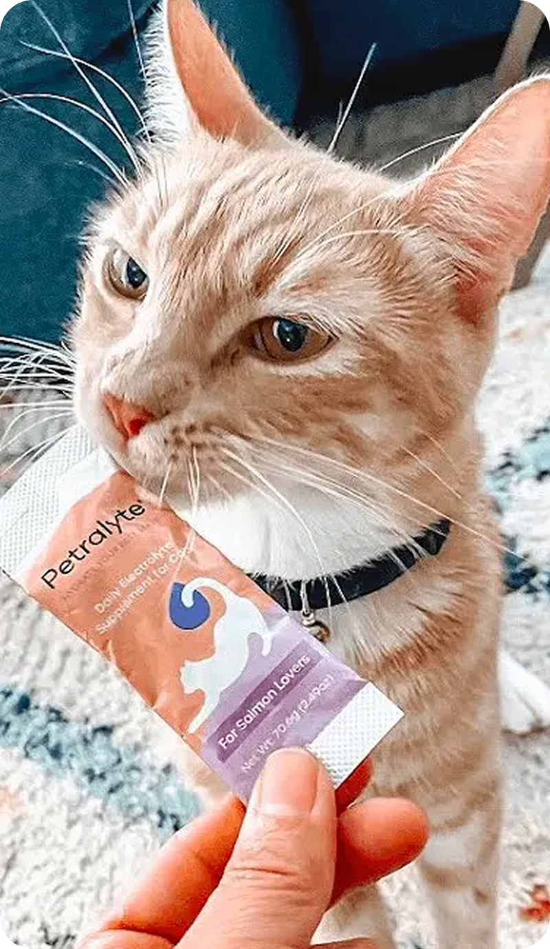 Unlike humans, cats don’t sweat through their skin. They lose fluids and electrolytes through panting, urination, and natural body processes - making replenishment key to overall health.